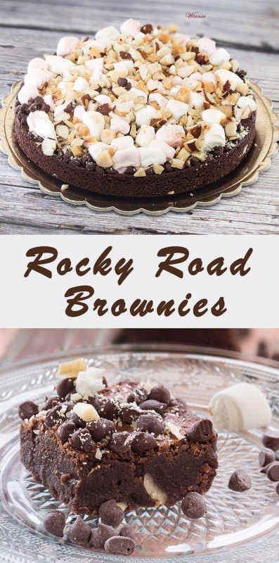 וכמובן חתיכות מרשמלו, בתוספת אגוזים, שמפזרים כמה דקות לפני סיום האפייה.