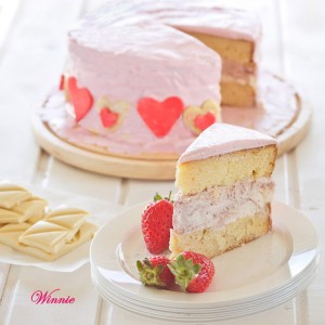 White Chocolate Mud Cake with layer of Strawberry Cheesecake