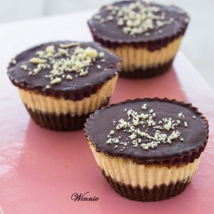 Peanut-Butter mini Cheesecakes, topped with Chocolate